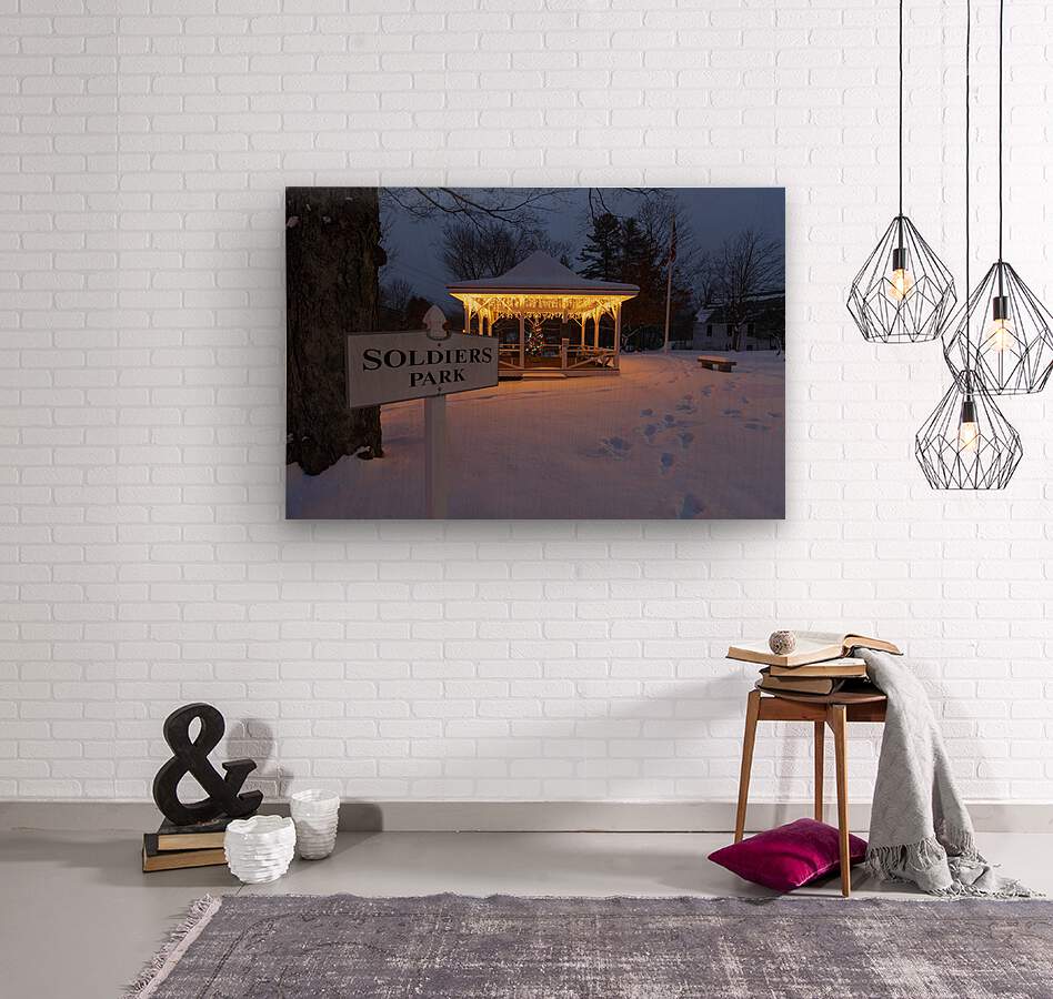 Soldiers Park in the village of North Woodstock New Hampshire early in the morning during the month of January.