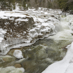 Iced over cascades at Rocky Gorge Scenic Area along the Swift River in Albany New Hampshire during the winter months. Designated a scenic area in 1961...[+]