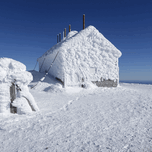 Appalachian Trail - Rime ice on the summit of Mount Washington in the White Mountains New Hampshire USA during the winter months.