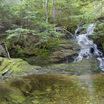 Panoramic of Tama Fall on Snyder Brook in Randolph New Hampshire during the summer months. This waterfall is located along the Fallsway Trail and is p...[+]