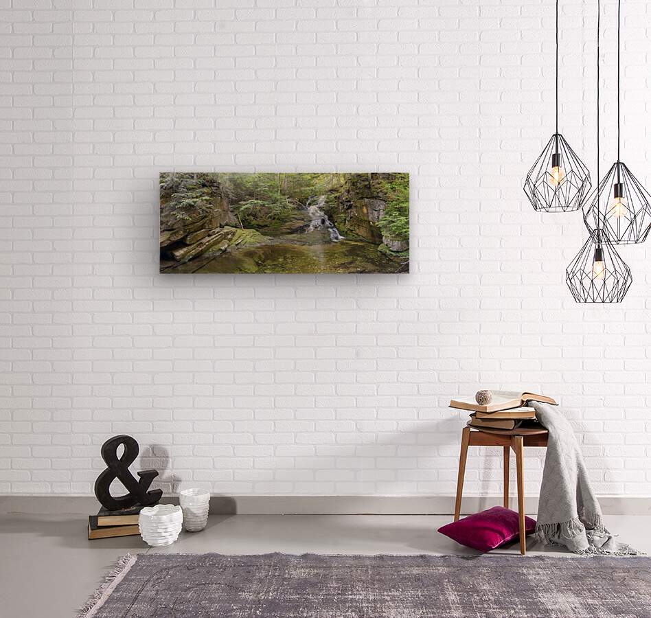 Panoramic of Tama Fall on Snyder Brook in Randolph New Hampshire during the summer months. This waterfall is located along the Fallsway Trail and is part of the Snyder Brook Scenic Area.