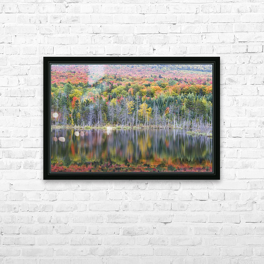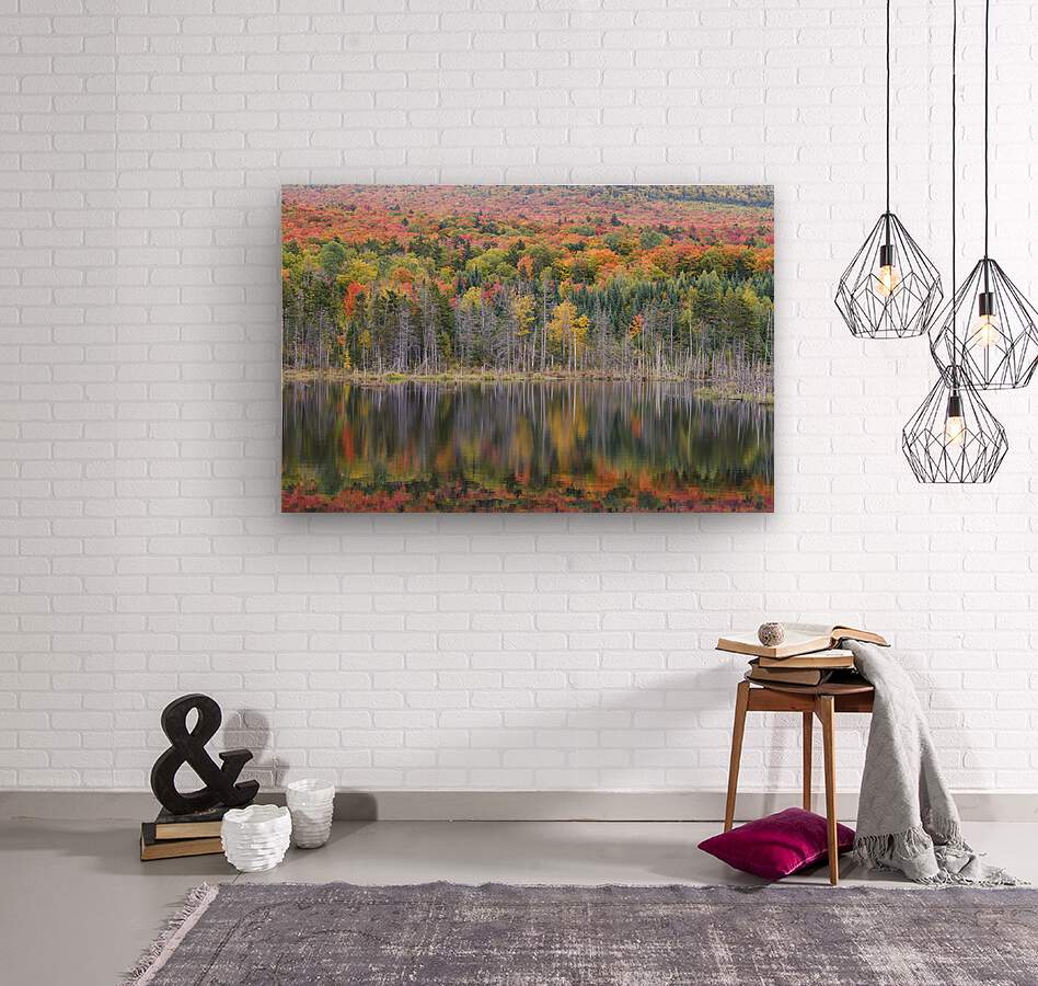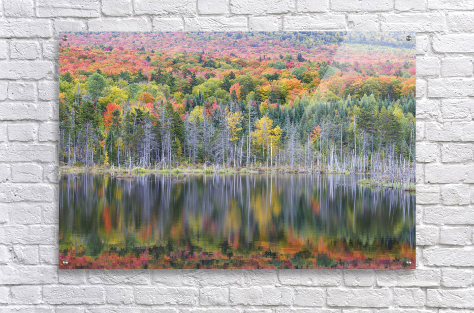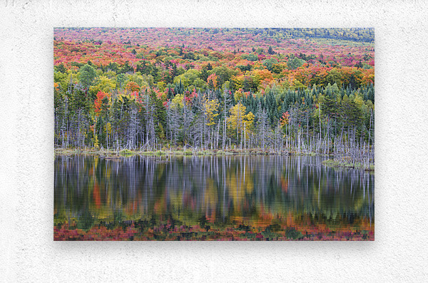 Reflection of autumn foliage on Mount Deception in a small pond along Old Cherry Mountain Road in Carroll New Hampshire USA during the autumn months.
