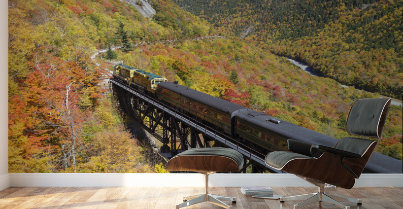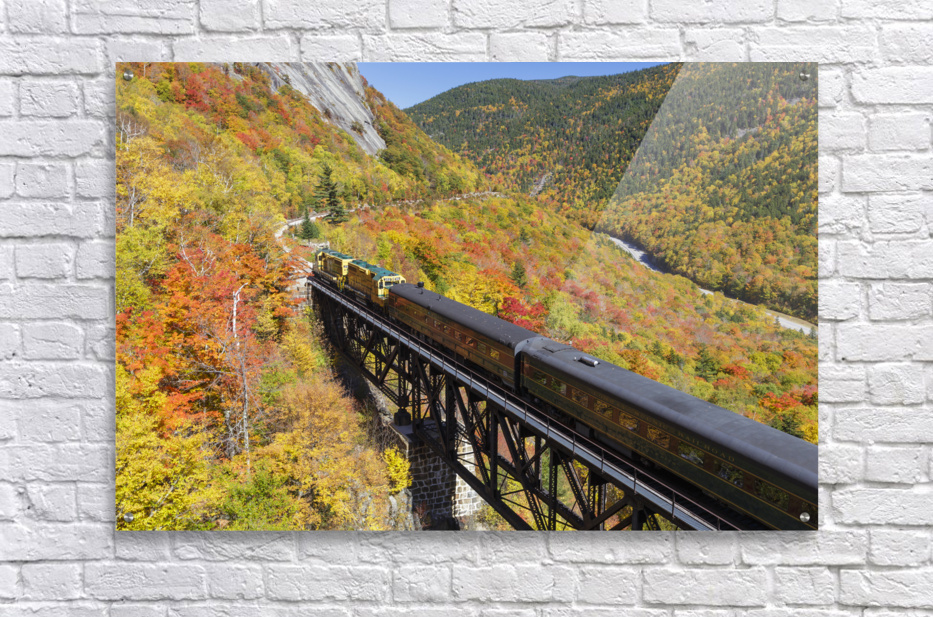 Conway Scenic Railroad - Notch Train crossing the Willey Brook Trestle along the old Maine Central Railroad in Harts Location New Hampshire during the autumn months. This trestle is within Crawford Notch State Park. And since 1995 the Conway Scenic Railroad which provides passenger excursion trains has been using the track.