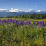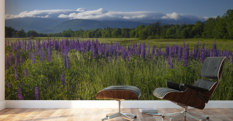 Lupine along Valley Road in Jefferson New Hampshire on a spring morning. The Presidential Range is off in the distance.