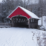 The Flume Covered Bridge in Franconia Notch State Park in Lincoln New Hampshire covered in snow on a winter morning. This picturesque bridge crosses t...[+]