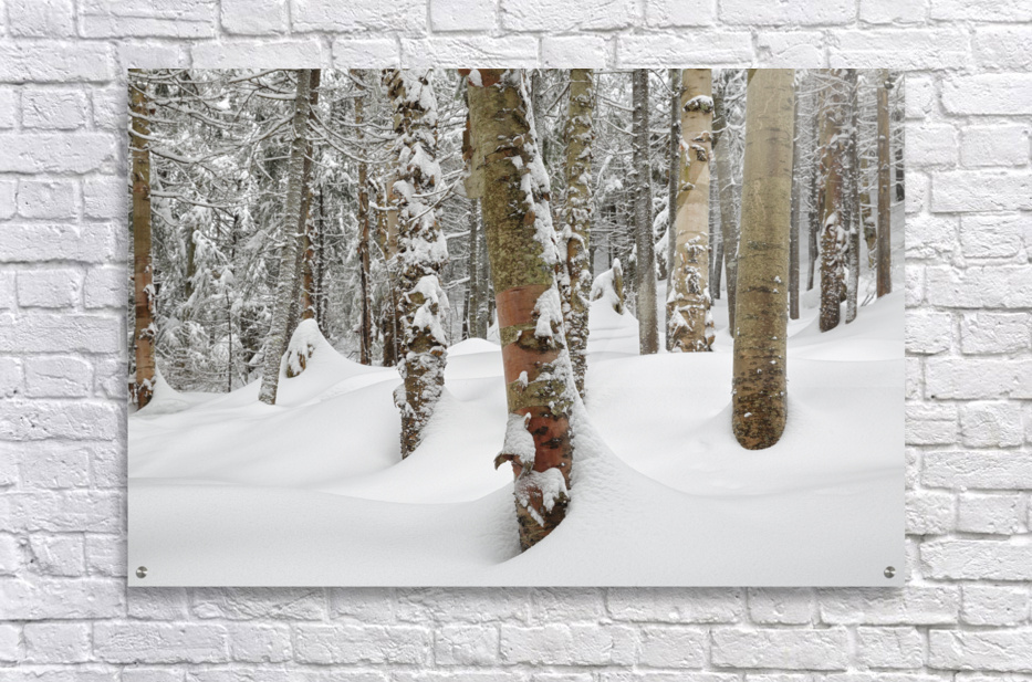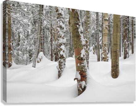 Forest on the northern slopes of Mount Jim in Kinsman Notch of Woodstock New Hampshire USA during the winter months. This area was logged by the Johns...[+]