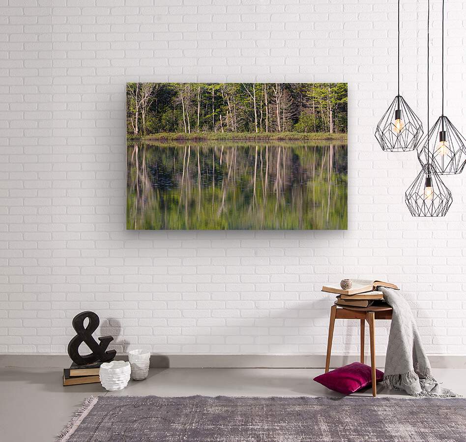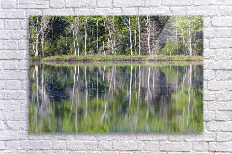 Reflection of forest in Elbow Pond in North Woodstock New Hampshire during the spring months. Species of fish in Elbow Pond include chain pickerel yellow perch and smallmouth bass. This area was logged during the Gordon Pond Railroad era 1907-1916.