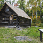 The Fabyan Guard Station during the autumn months. It was built in 1923 by Clifford Graham along the old Jefferson Turnpike now Old Cherry Mountain Road in the Carroll New Hampshire. Its the last remaining guard station in the White Mountain National Forest. The cabin was built using spruce logs from the surrounding area.