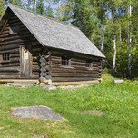 The Fabyan Guard Station along old Jefferson Turnpike now Old Cherry Mountain Road in the White Mountains New Hampshire during the summer months. Built in 1923 by Clifford Graham it is the last remaining guard station in the White Mountain National Forest. The cabin was built using spruce logs from the surrounding area.