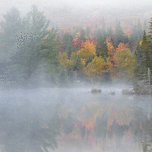 Wildlife Pond in Bethlehem New Hampshire USA on a foggy autumn day.