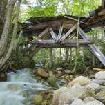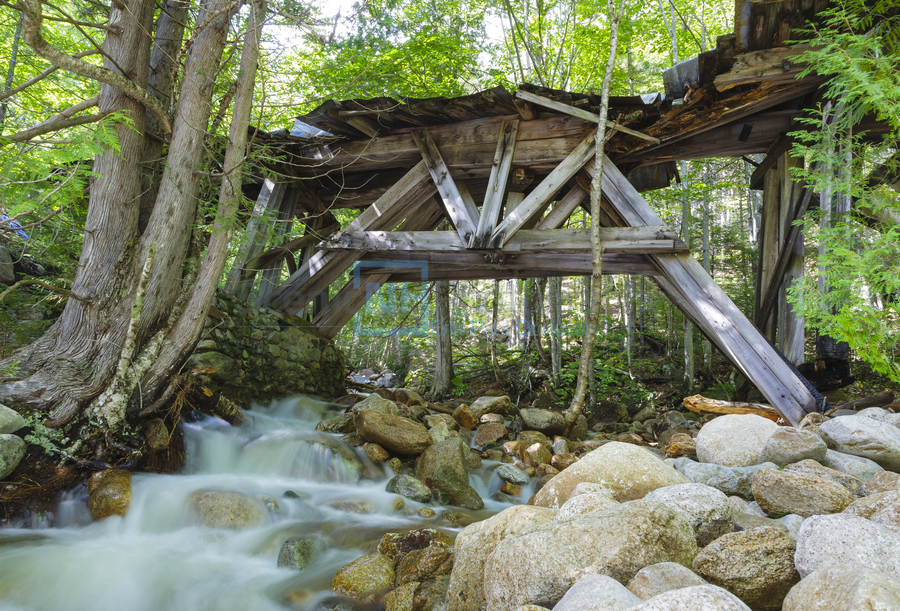 The historic timber trestle 16 which crosses Black Brook along the abandoned East Branch & Lincoln Railroad 1893-1948 in the Pemigewasset Wilderness o...[+]