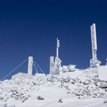 The summit of Mount Washington in Sargents Purchase in the New Hampshire White Mountains during the winter months. Mount Washington at 6288 feet is th...[+]
