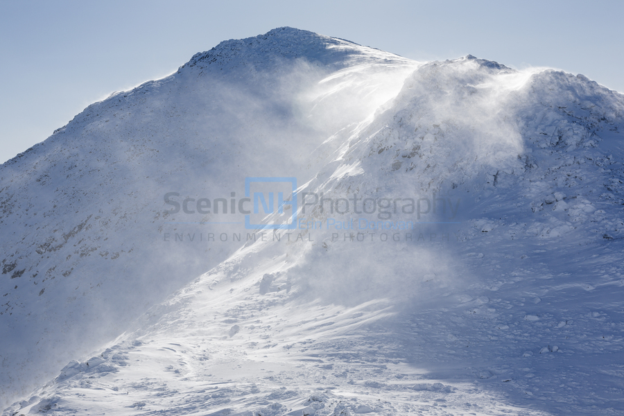 Strong winds blow snow off the summit of Mount John Quincy Adams in the Presidential Range of the New Hampshire White Mountains during the winter months. This sub-peak of Mount Adams is named after President John Quincy Adams.