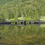 Reflection of a dam on the Saco River at the Willey House Historical site in Hart’s Location of the New Hampshire White Mountains. The Willey House Historical site is within Crawford Notch State Park.