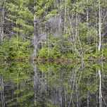 Reflection of forest in a small pond along the Kancamagus Highway Route 112 in the White Mountains New Hampshire.