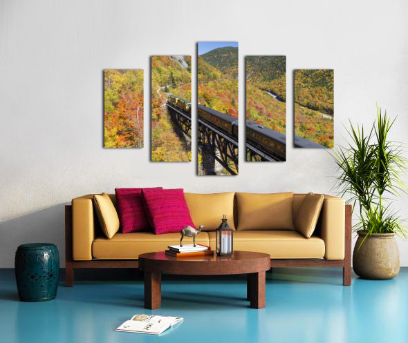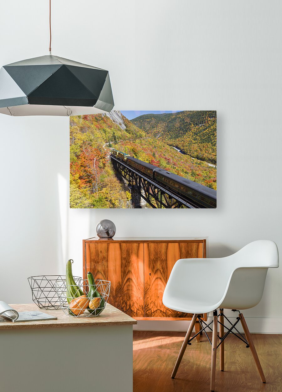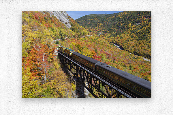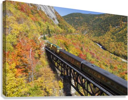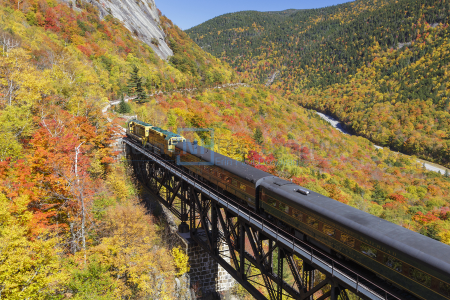 Conway Scenic Railroad - Notch Train crossing the Willey Brook Trestle along the old Maine Central Railroad in Harts Location New Hampshire during the autumn months. This trestle is within Crawford Notch State Park. And since 1995 the Conway Scenic Railroad which provides passenger excursion trains has been using the track.