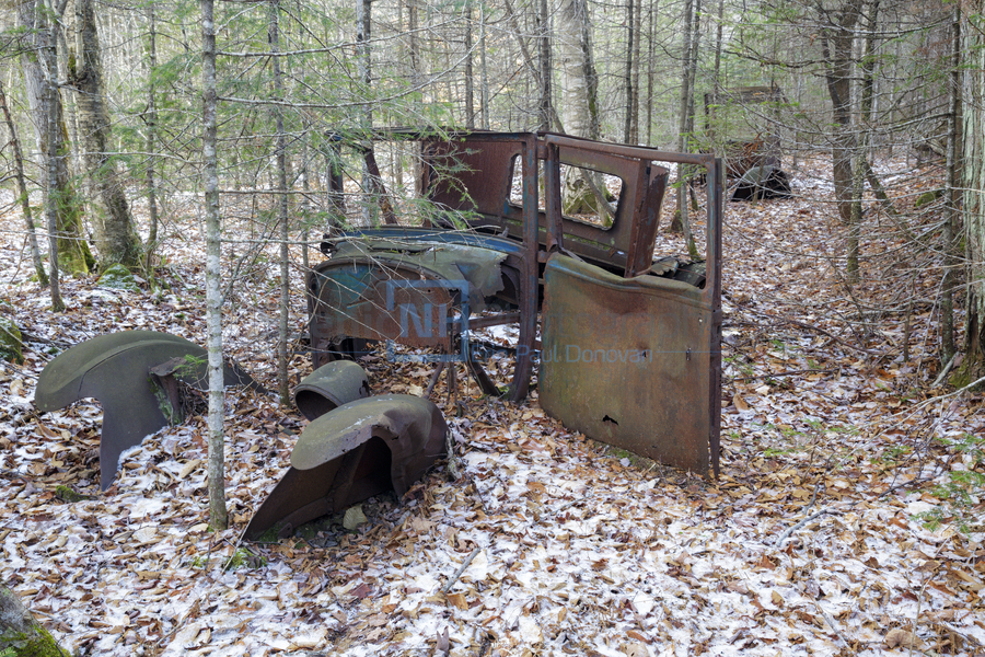 Abandoned car in the Tunnel Brook drainage of Benton New Hampshire. During the 1900s there was a road connecting Benton and Warren through Tunnel Brook Notch. And it is believed the road was closed in 1927 because of landslides.