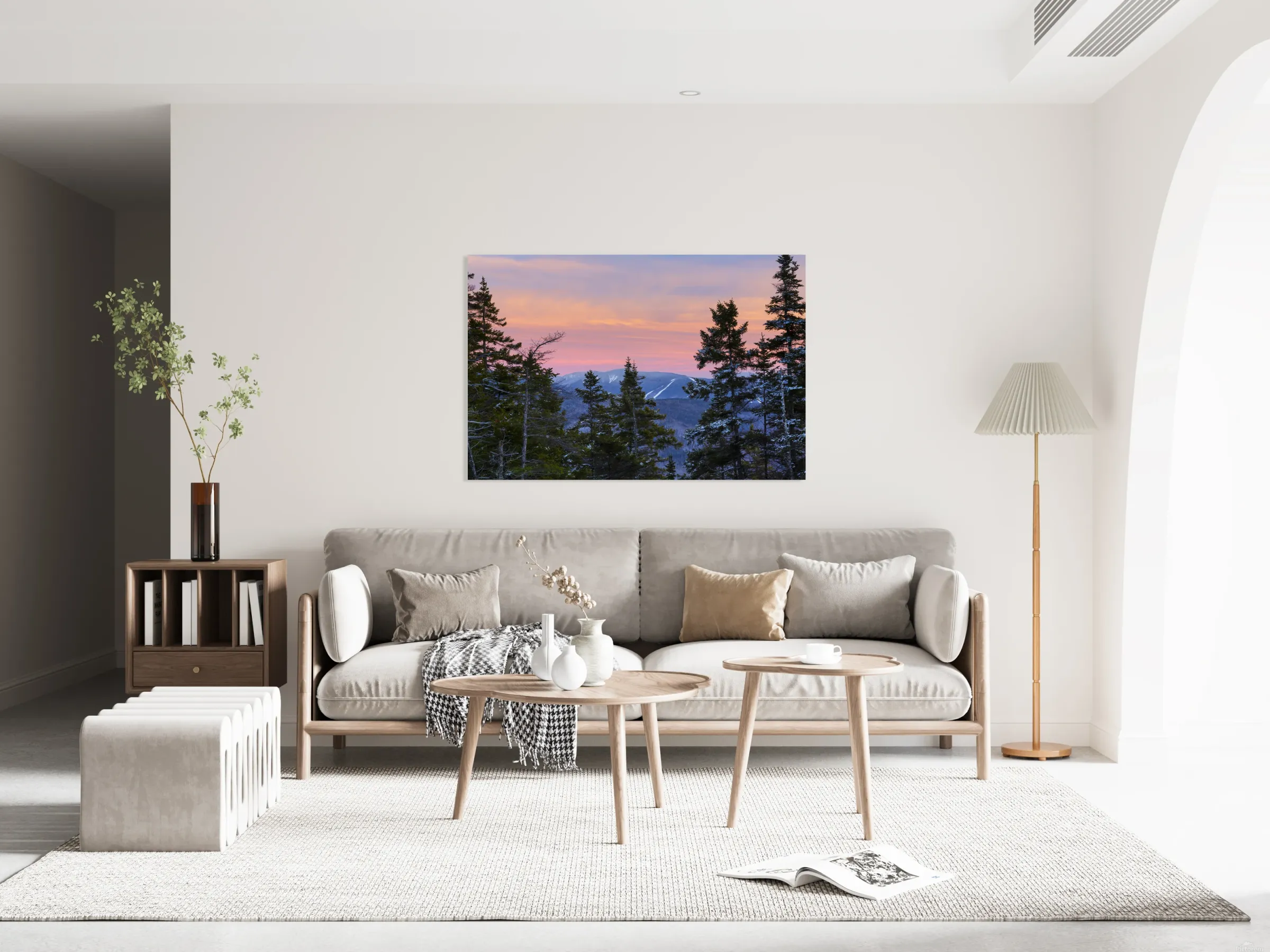 Franconia Notch - Loon Mountain at sunset from the summit of Mount Pemigewasset in Lincoln New Hampshire during the winter months.